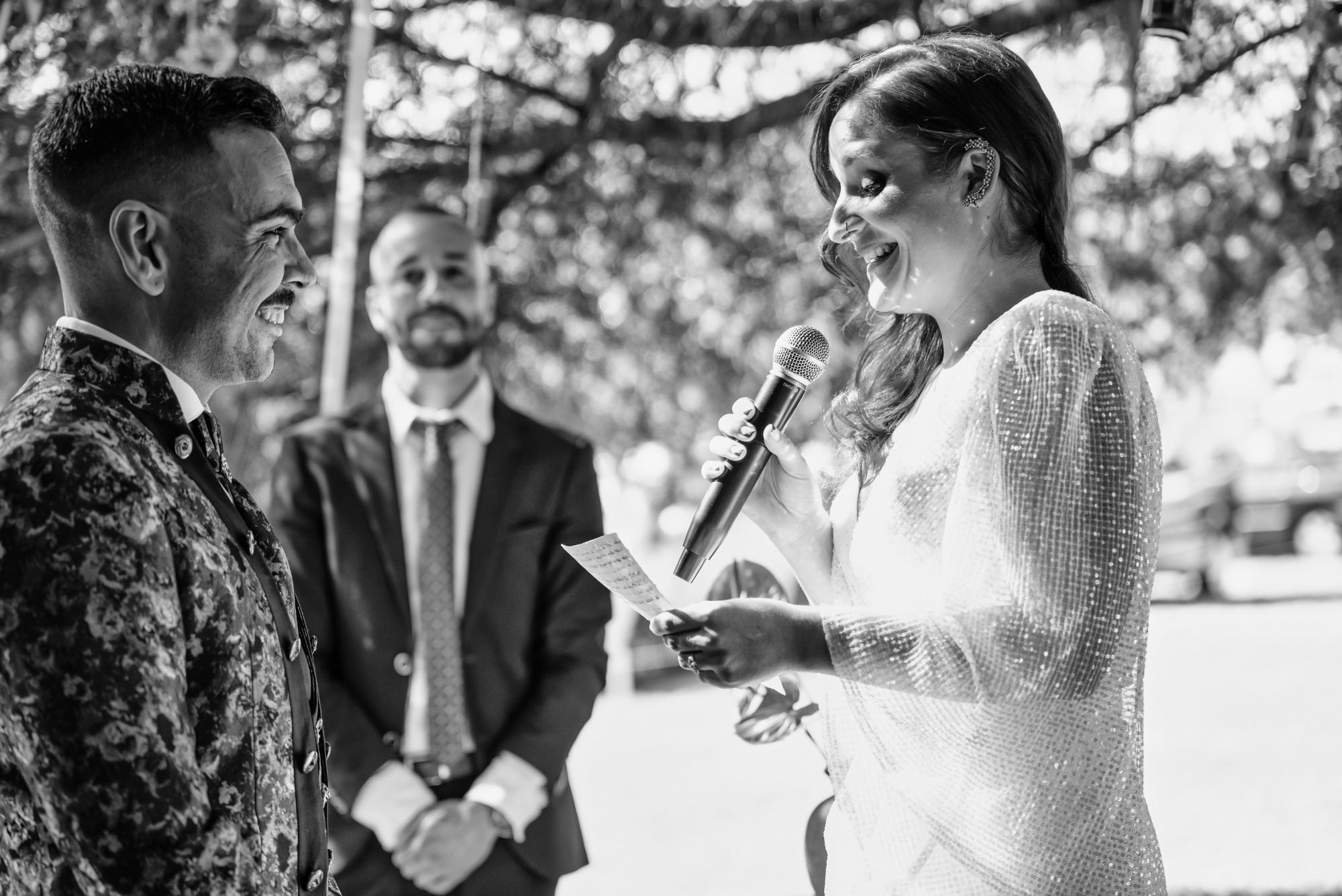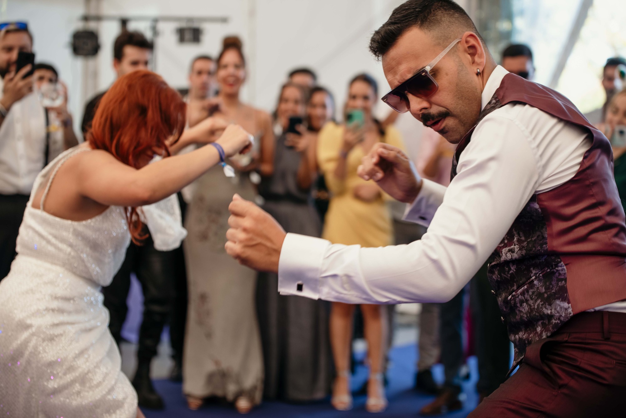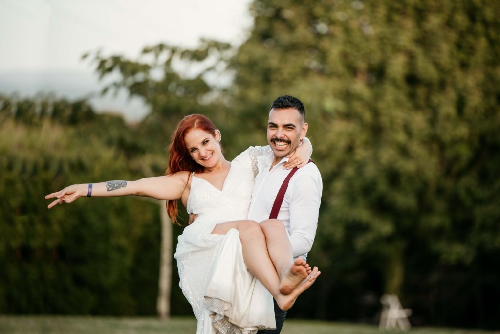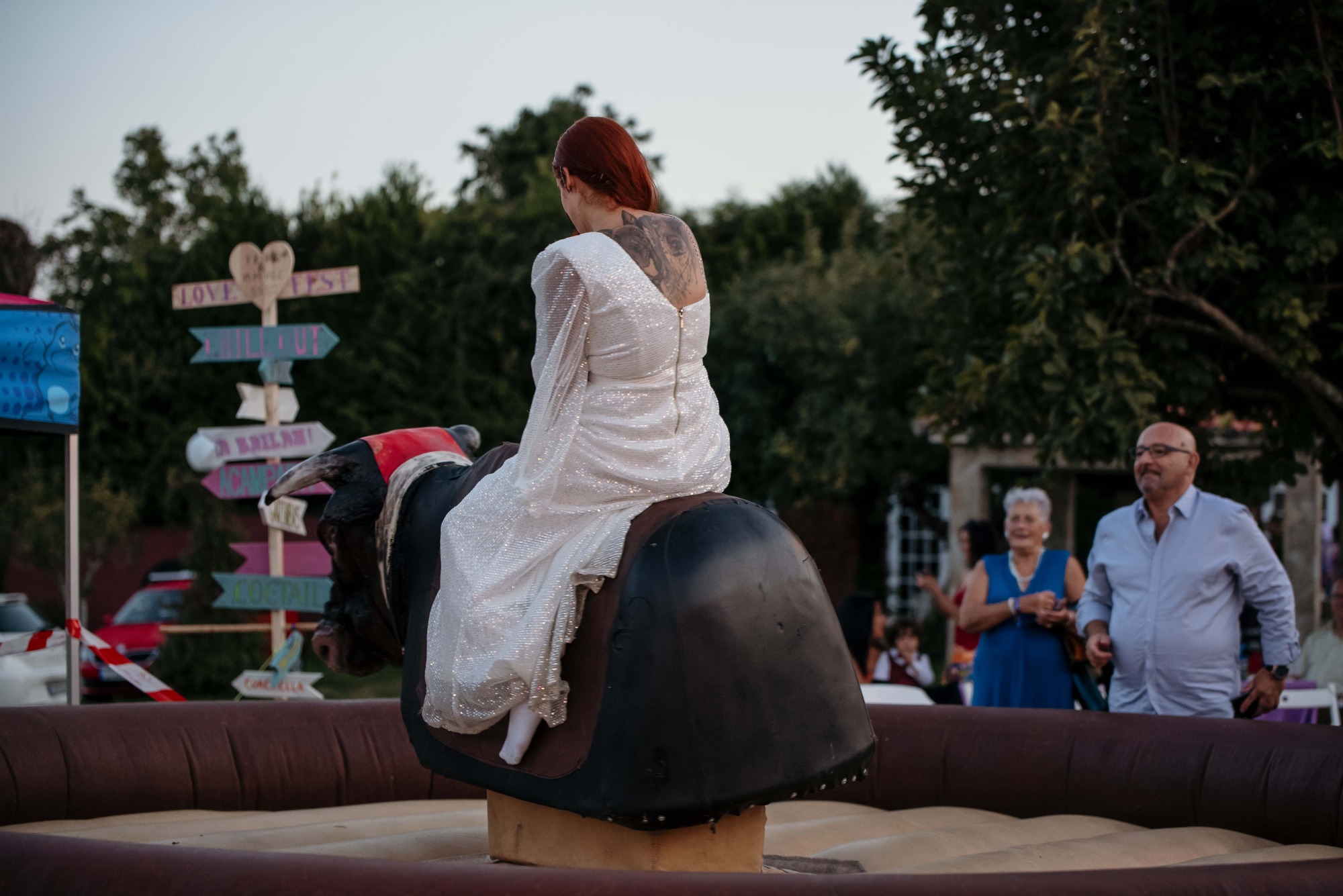 Iria y Miguel son una pareja con una química que contagia, son inmensamente divertidos y su boda no iba a ser menos: piscina, toro mecánico, fiesta de disfraces… ¡Una locura muy divertida!